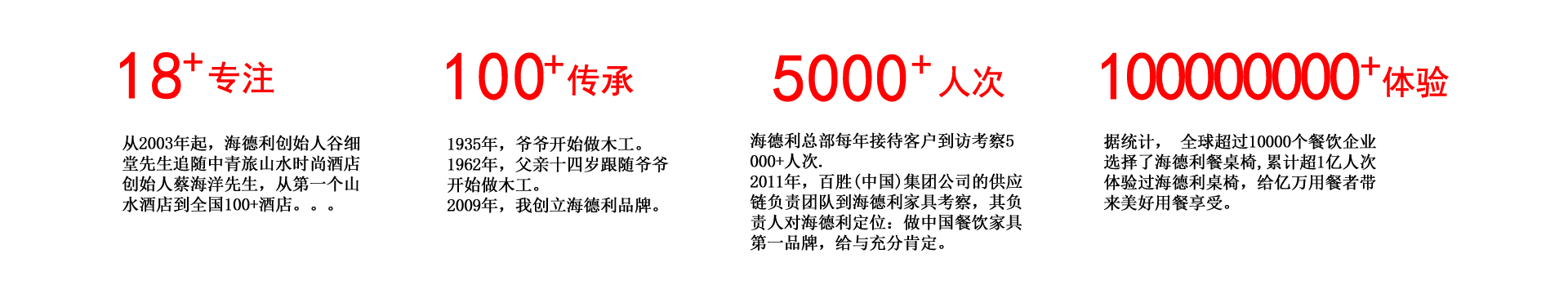 從歐美發(fā)達(dá)市場到東南亞乃至非洲等新興市場,超過100000個餐飲品牌及餐飲連鎖店,都在使用海德利家具,給您信心保證。